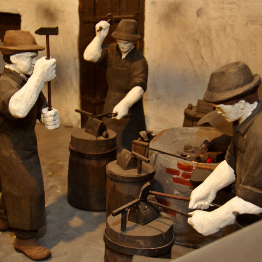 Kovači so delali v žebljarskih delavnicah – vigenjcih. Teh delavnic je bilo v Železnikih preko petdeset. V vsaki je bilo najmanj eno kovaško ognjišče, okoli katerega je bilo razporejenih več nakoval. Na nakovalu sta delala mojster in njegov pomočnik. Izdelovali so žeblje različnih velikosti, zato je bilo tudi število dnevno izdelanih žebljev različno. Najbolj spretni kovači so se imenovali tavžentarji, ker so menda izdelali tisoč žebljev v enem delovnem dnevu. Kako je izgledalo delo v taki kovaški delavnici, si lahko ogledate v muzeju ob maketnem prikazu.